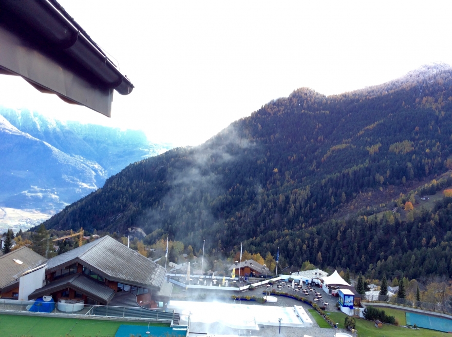 Arrêt du bus navette pour les pistes à proximité directe et liaison avec le Centre Thermal par galerie fermée et chauffée