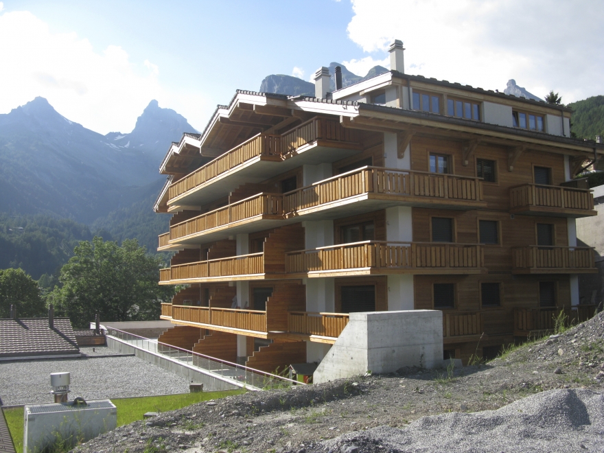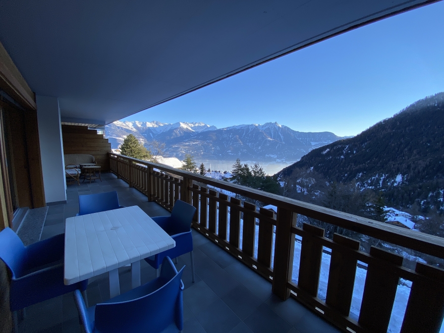 Appartement de 3,5 pièces de situation Sud avec magnifique vue sur les montagnes. Immeuble construit sur parcelle attenante au Centre Thermal