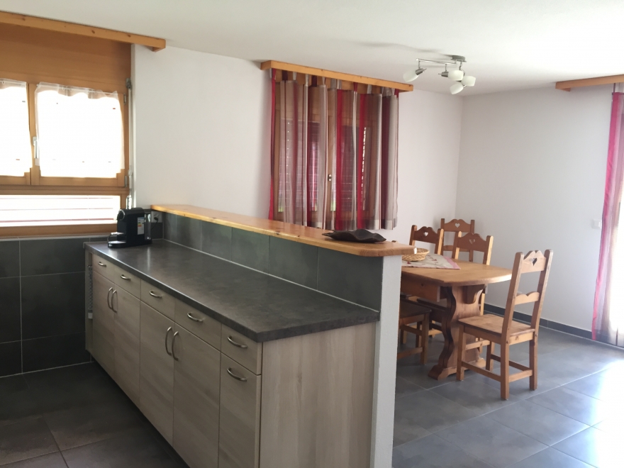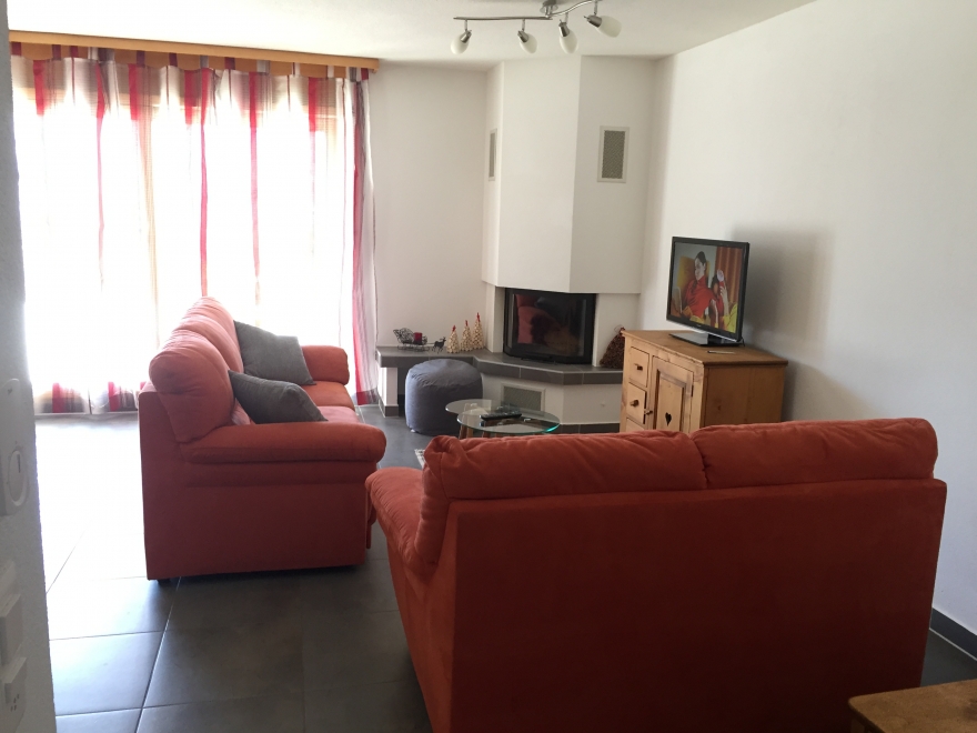 Appartement de 3.5 pces situé au rez-supérieur d'un immeuble de 12 appartements avec ascenseur, arrêt de bus devant l'immeuble et en hiver bus-navette pour les pistes.